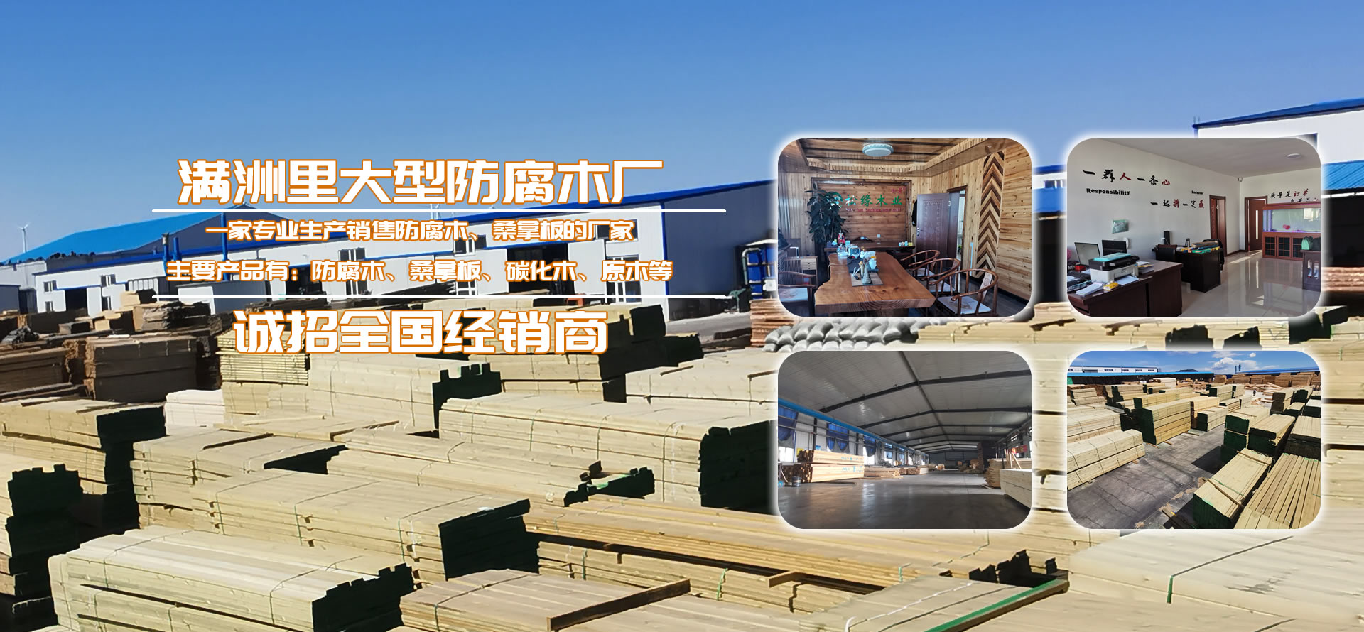 滿洲里松緣木業(yè)有限公司是一家專業(yè)從事戶外防腐木深加工企業(yè)。工廠總占地面積2.4萬平方米,其中廠房占地面積4000平,水泥硬化地面積2萬平方米,防腐木年生產(chǎn)量80000立方米,桑拿板年生產(chǎn)量310000平方米。公司長年貯備充足、刨光材、板材成品防腐木以及各種進口防腐木材。從俄羅斯選材調(diào)運,保證有充足的優(yōu)質(zhì)木材。精選生產(chǎn)加工的樟子松嚴(yán)格按照美國AWPA防腐等級標(biāo)準(zhǔn),經(jīng)過真空加壓浸等15道專業(yè)的木材防腐生產(chǎn)工藝流程制造,使木材具有防腐、防蟲、防霉等功效,已廣泛用于古建筑、木亭、別墅、住宅區(qū)、公園廣場等公共場所。壽命持久50以上。產(chǎn)品售前售后的服務(wù),力求出廠的每件產(chǎn)品都是精品、藝術(shù)品,并在全國設(shè)立三十多個市級經(jīng)銷商。